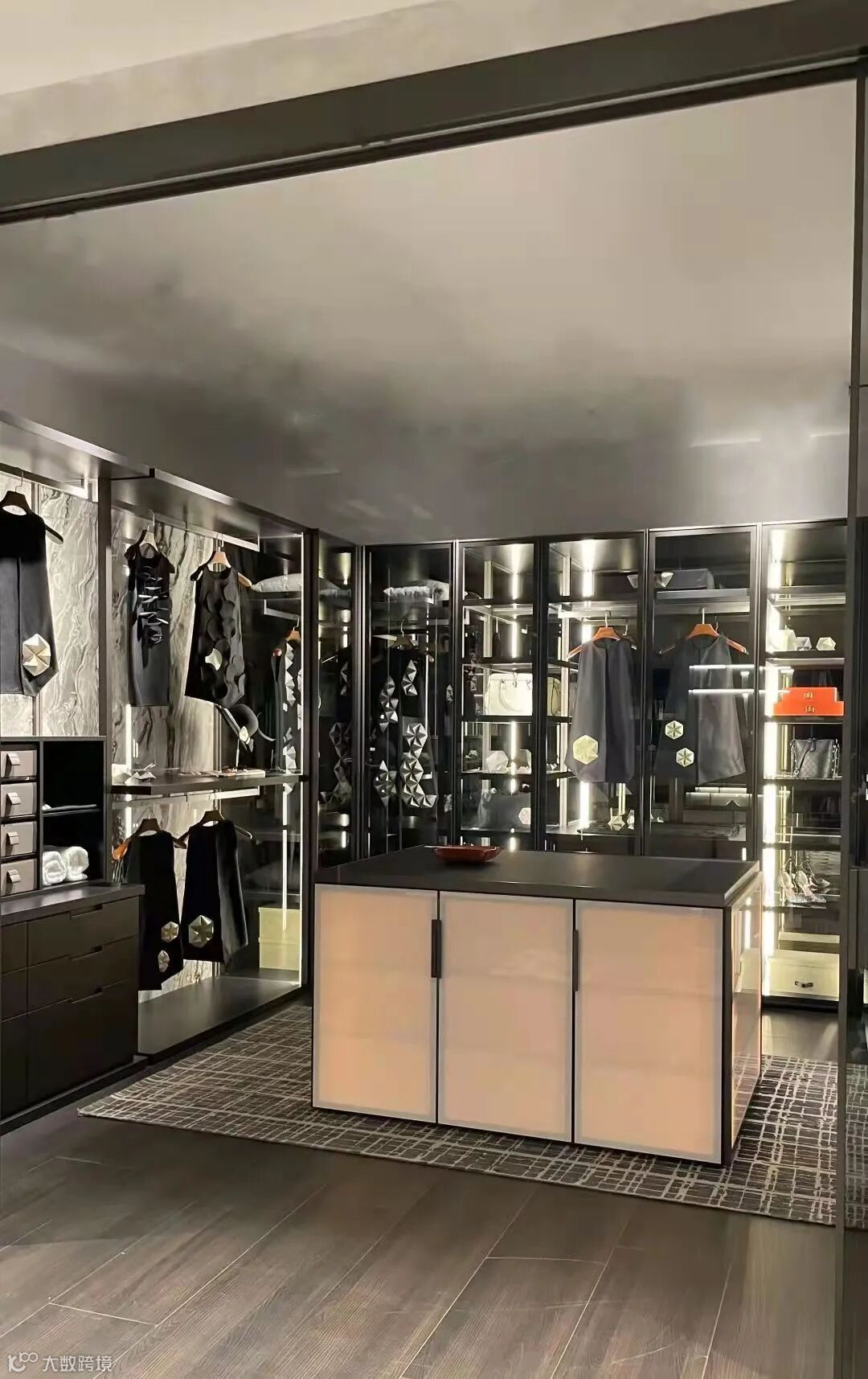 Palo-Alto I-Box & Millimetrica步入式衣帽间(Rex门板)淋漓尽致地展现了米舒拉艾美高超的制作工艺和臻贵的品质。