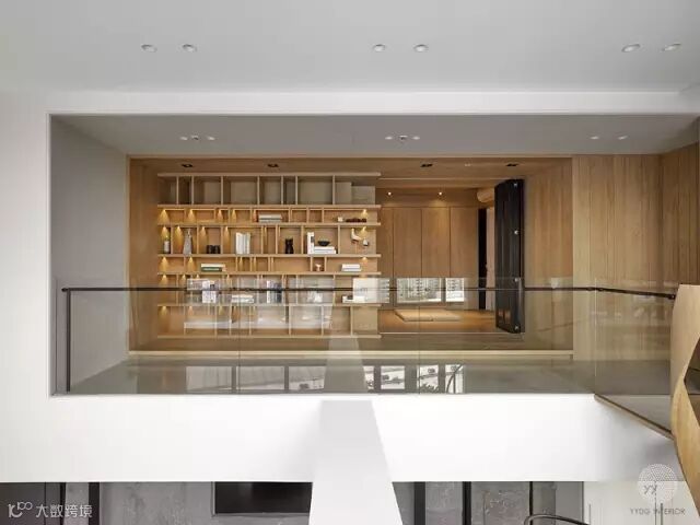 拆除二楼部分楼板,使用玻璃围栏,加强採光与视觉的通透性。