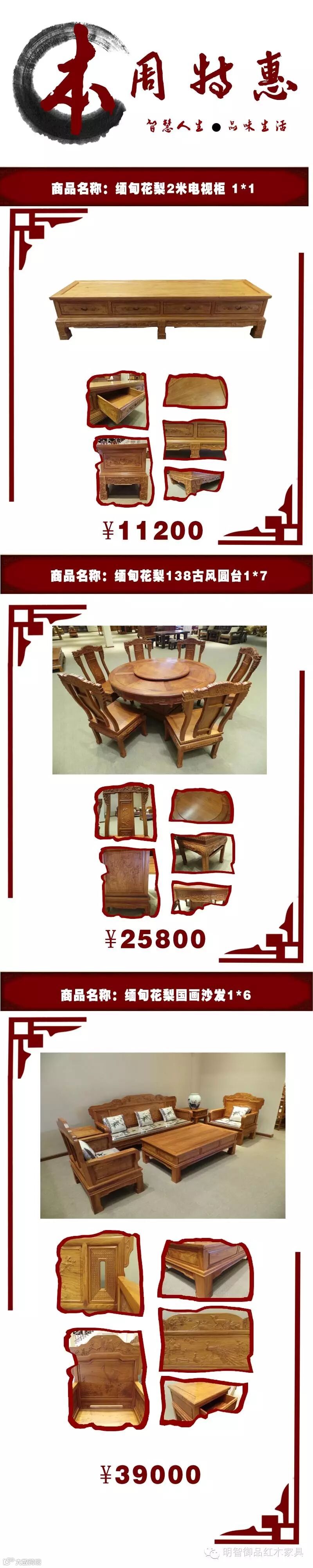 7月末本周精选特惠红木家具产品系列。 明智御品红木家具