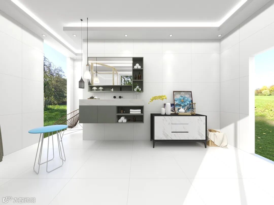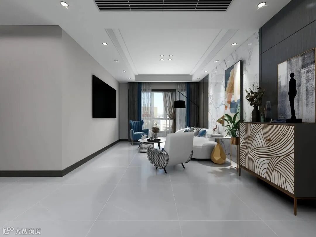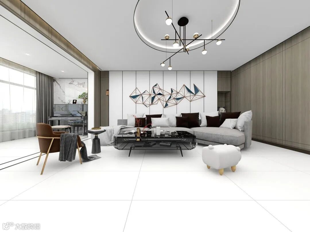 ③ 砖面更平整,不显“水波纹”。柔光砖表面附着柔光釉,可以解决常规釉面砖因烧制过程或抛光过程,导致的砖面不平整问题。
