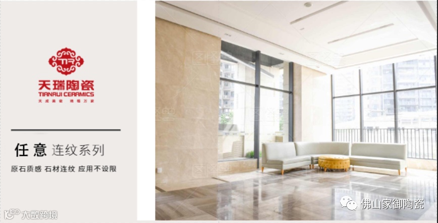 从功能来看,不仅可以连续拼接成一幅超大石材画面,用于工装、别墅等大空间的墙面地面,也可以像普通产品一样打乱画面随机组合,成为一般家装一石多面的地面用砖。既不失大气磅礴的优势,又能满足多种空间的应用需求,比追求单片瓷砖的超大规格,更具灵活性和便捷性,组合方式多样,也便于家装搬运和安装,这是功能上的【无穷大】。