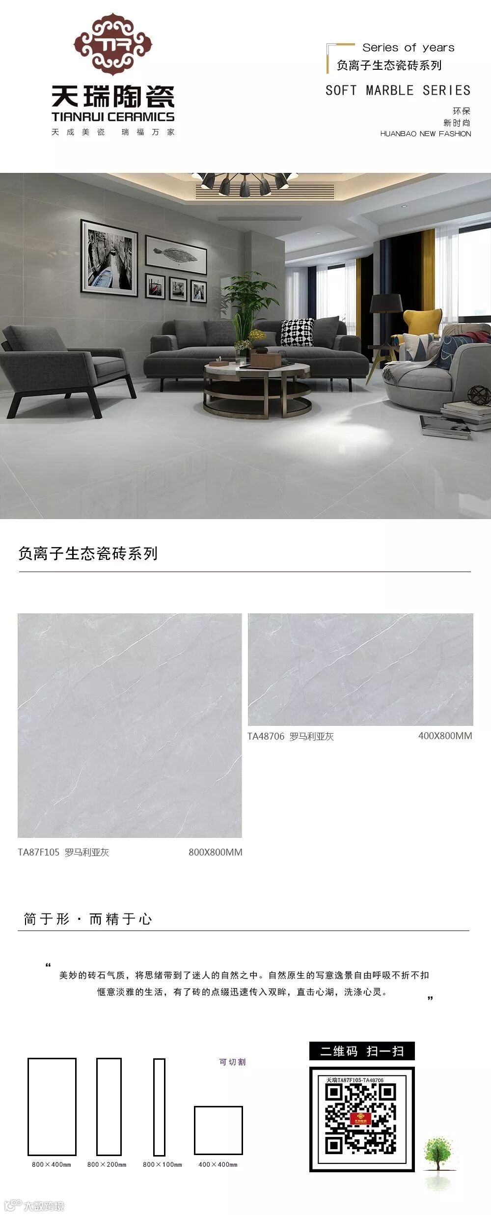 好瓷砖,传世臻品质。天瑞陶瓷坚持以精益求精的工匠精神造好砖,对品质的追求精细控制每一个环节,每一款产品要经历几十道工序加工,才能呈现到客户的眼前,精益求精的产品、历经岁月不蜕变的品质保障,保证消费者的生活品质需求。