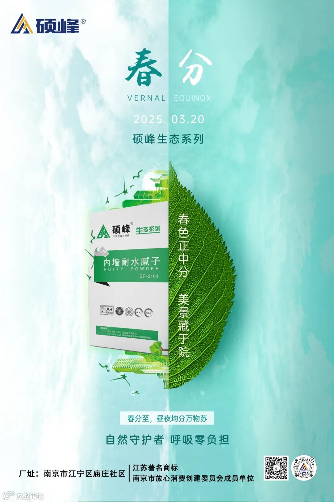 3月20日春分至,昼夜均分万物苏。硕峰生态系列腻子粉,以自然之名,为您的家居空间注入春日生机,让绿色环保与卓越性能在墙面完美共生!