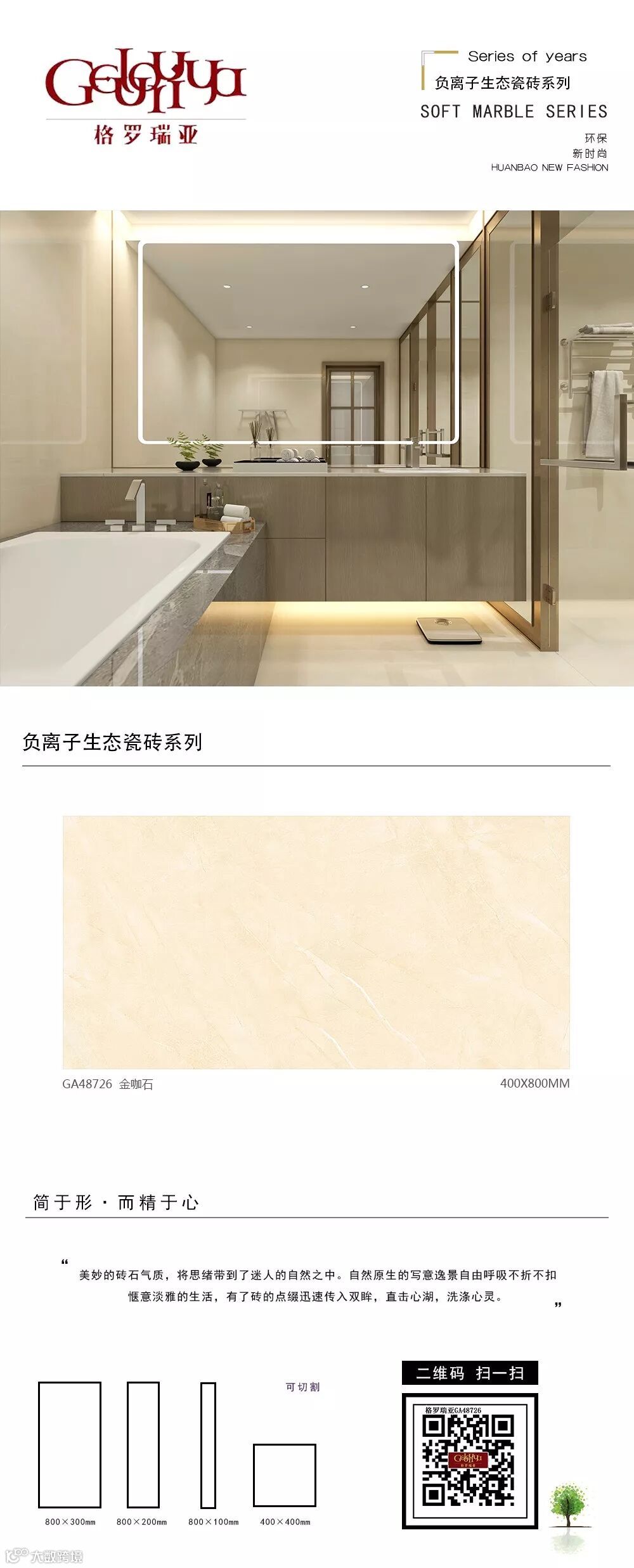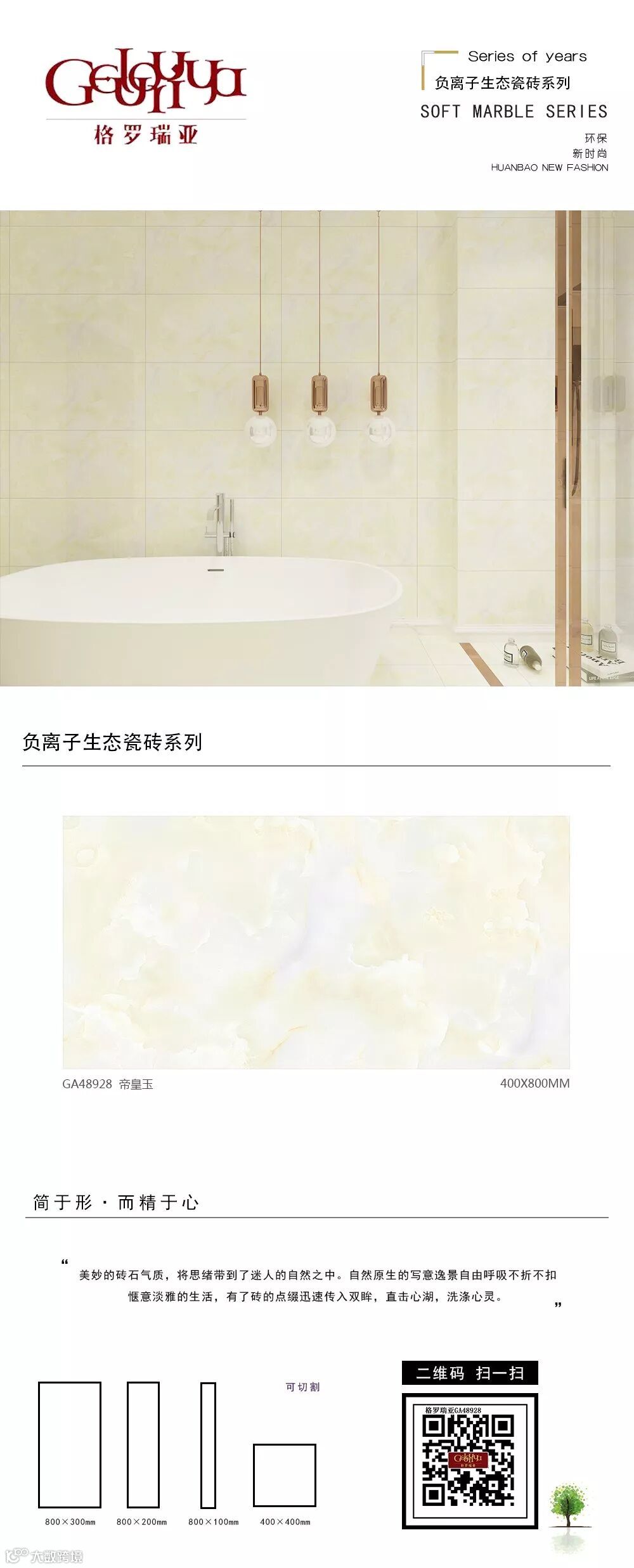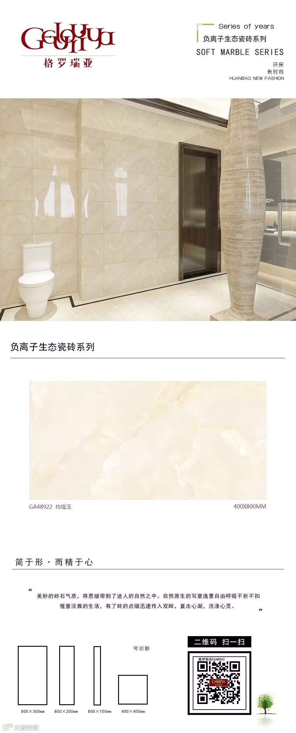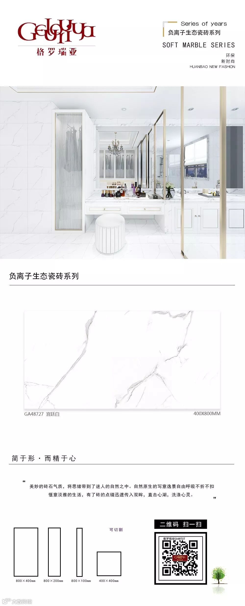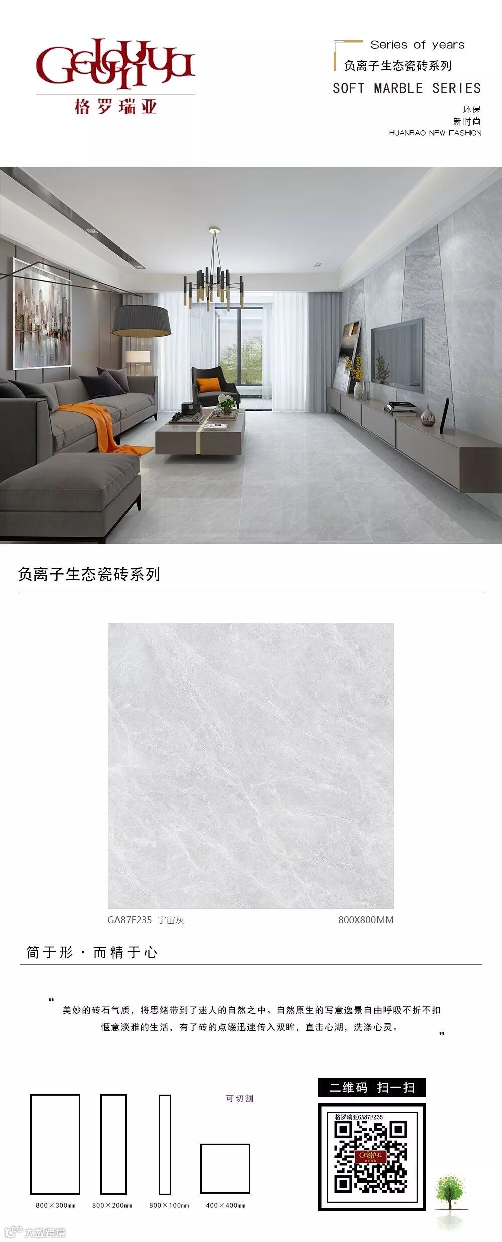 从二维到三维、从平面到立体,为您呈现更接近真实的空间体验;从静止到动态,为您带来“步移景异”的真实视觉感受。格罗瑞亚瓷砖,400*800、800*800生态负离子花色720°全景VR设计,精挑细选经典优质样板房案例,为您呈现不一样的视觉盛宴。