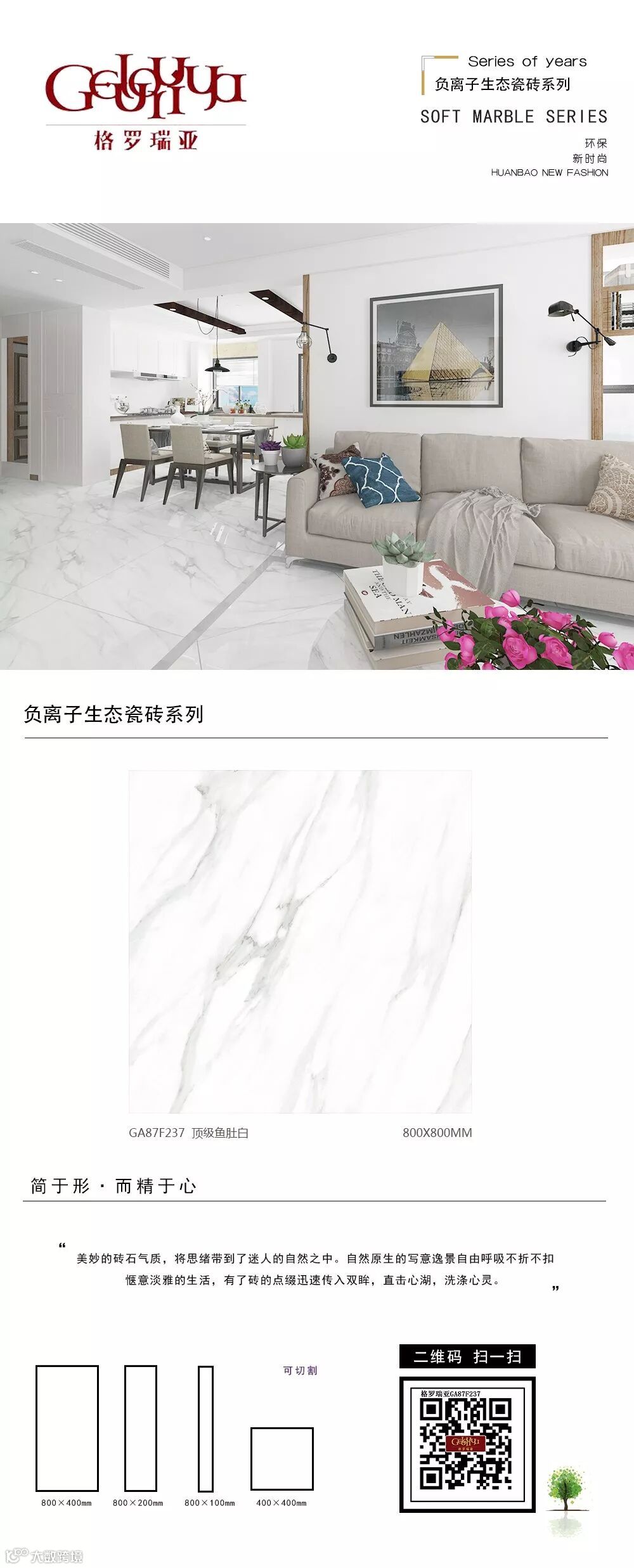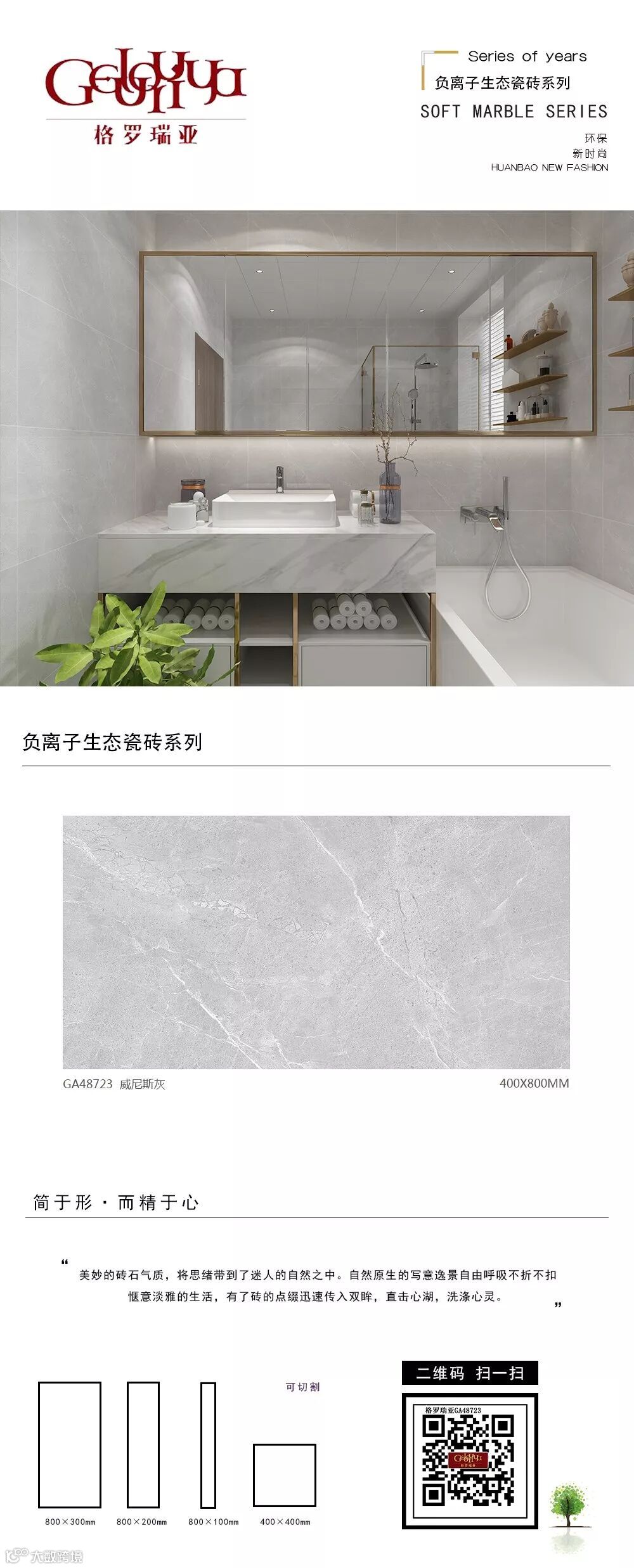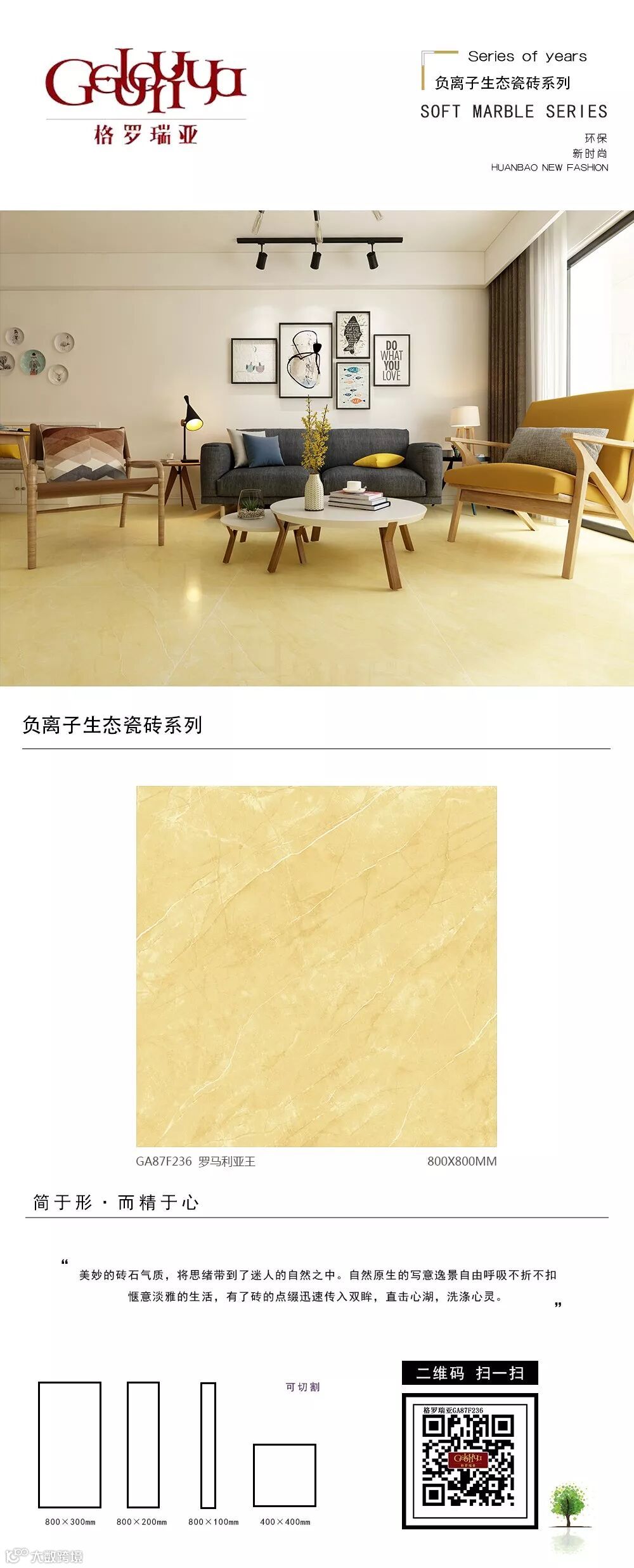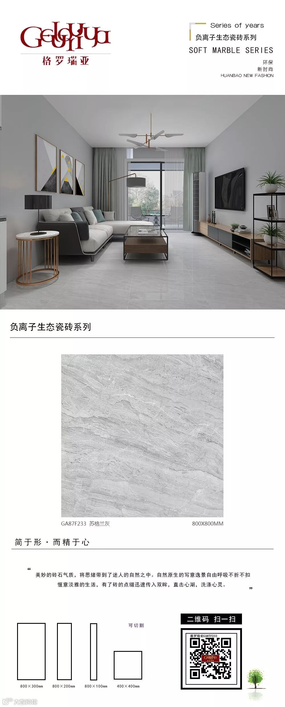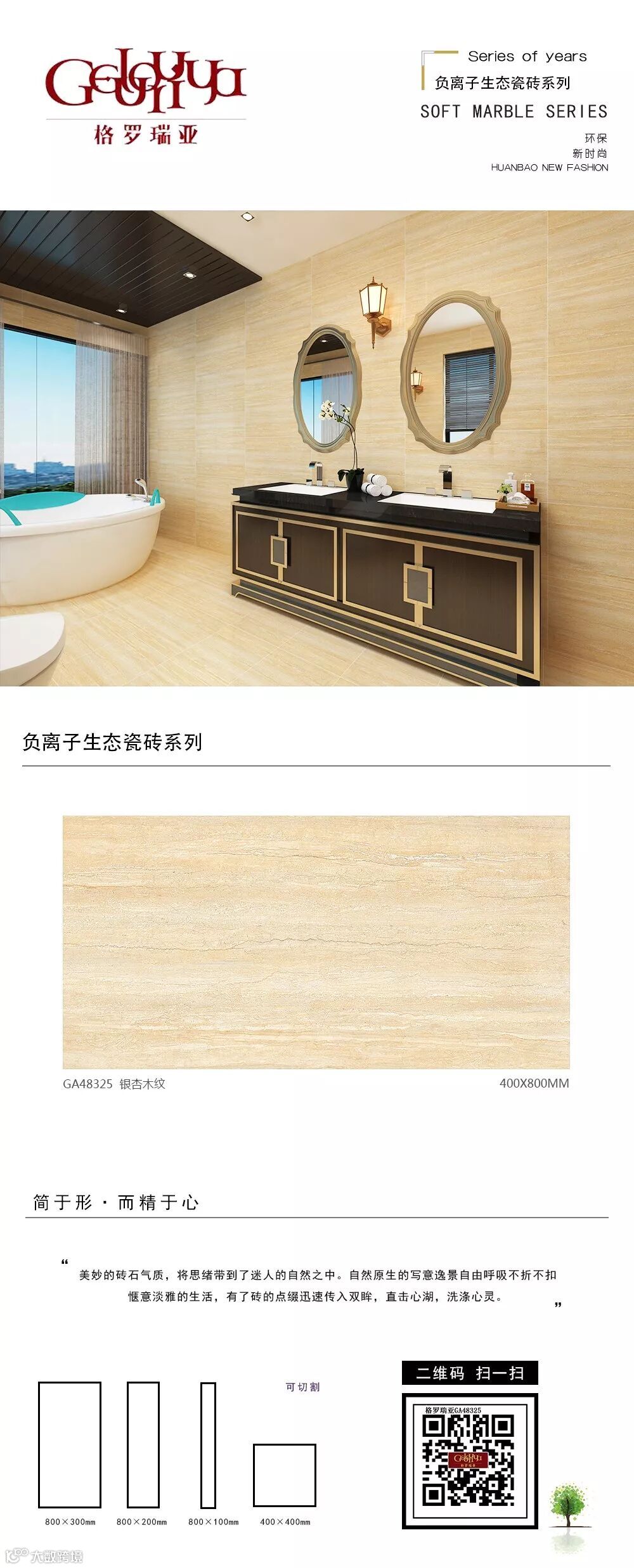 从二维到三维、从平面到立体,为您呈现更接近真实的空间体验;从静止到动态,为您带来“步移景异”的真实视觉感受。格罗瑞亚瓷砖,400*800、800*800生态负离子花色720°全景VR设计,精挑细选经典优质样板房案例,为您呈现不一样的视觉盛宴。