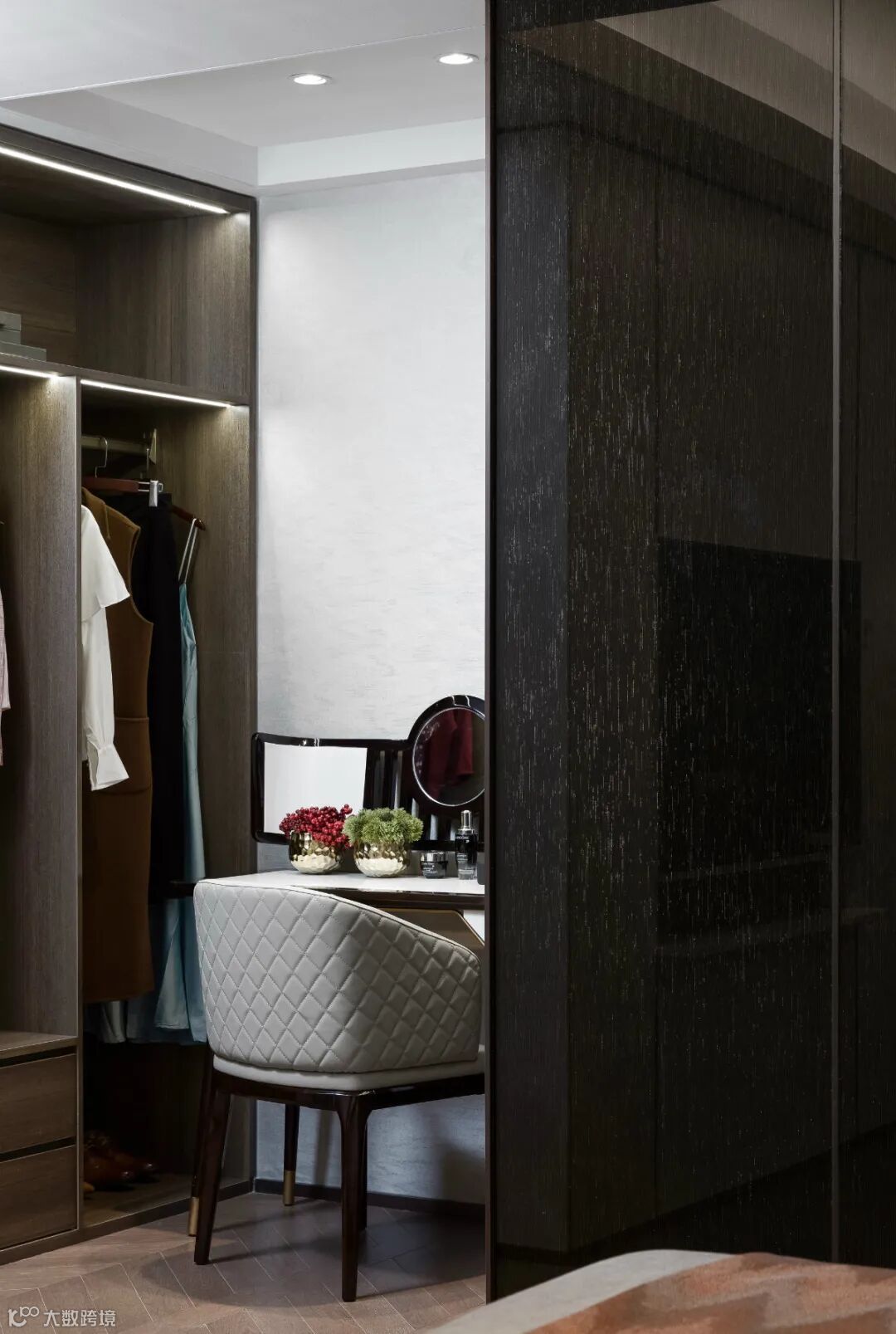 ▲卧室里面还带有一个小衣帽间+梳妆台的空间,也为女主人提供了一个情趣优雅的梳妆与打扮空间。