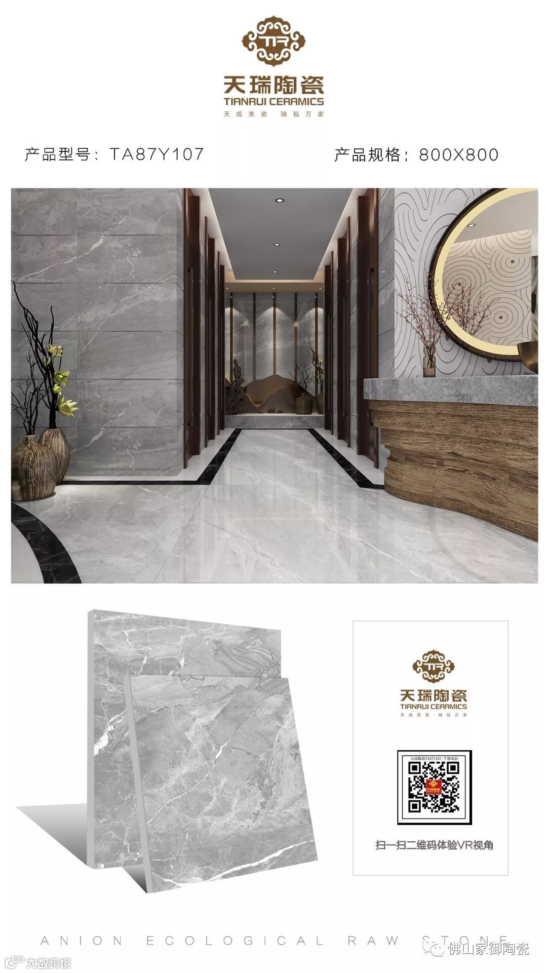 天瑞陶瓷大理石系列产品,品质卓越,展现天然大理石的细腻质感,采集大自然的各种色调,于灰色系中挖掘明暗、深浅、光感等不同元素,开发出多种层次、纹理不一样的精品花色。明暗相错叠和,深浅错综融合,在精致、优雅的场景里,从形式到功能,展现着与众不同的时代气质。