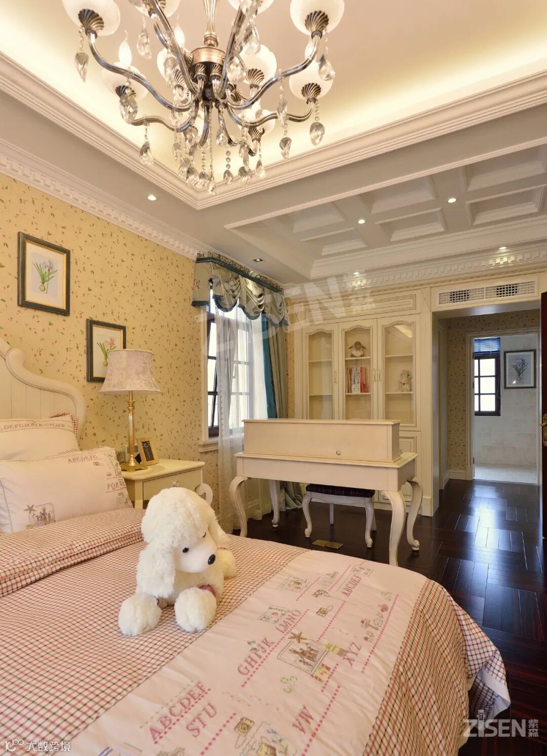在灯光方面,是比较有讲究的,孩子对光线是非常敏感的,过亮的光线会刺激孩子的眼睛,影响他们正常的视力发育。可以选择温暖的色调,营造一种温馨的氛围,也可以在床头放一盏台灯,便于局部照明。