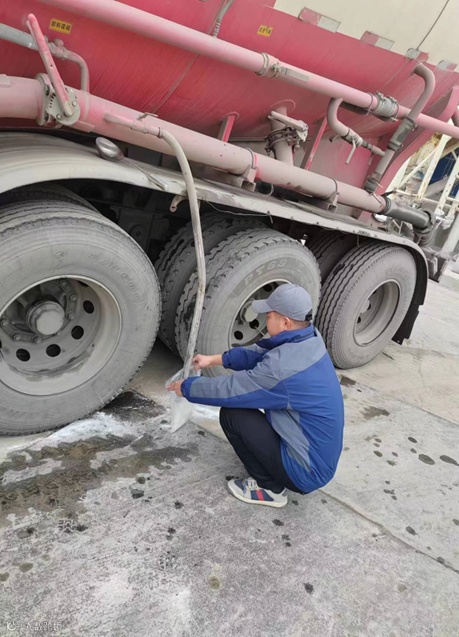 2.质检室人员针对每辆进厂粉料罐车亲自取样。