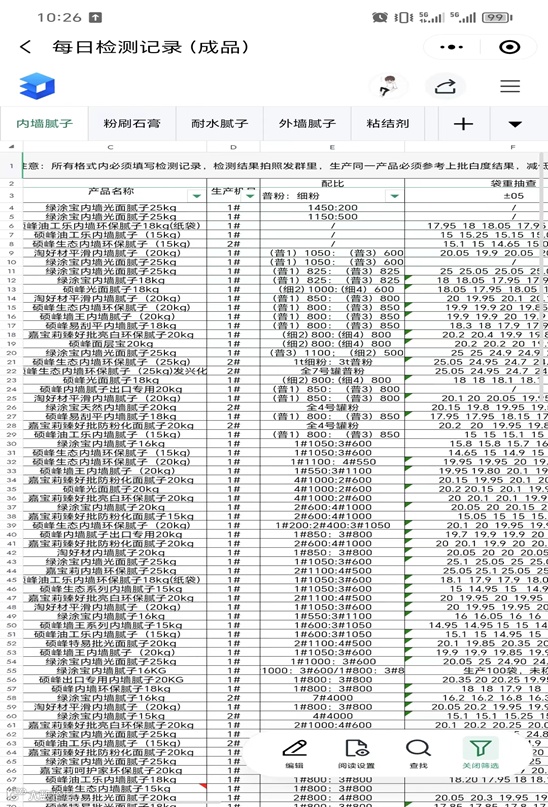 产品生产完工后质检部门还会对成品入库前进行最后检测,检测包装袋漏粉情况,成品码垛整齐情况,如发现不合格通知相关车间负责人进行对应情况处理,直到合格后允许出库发货。