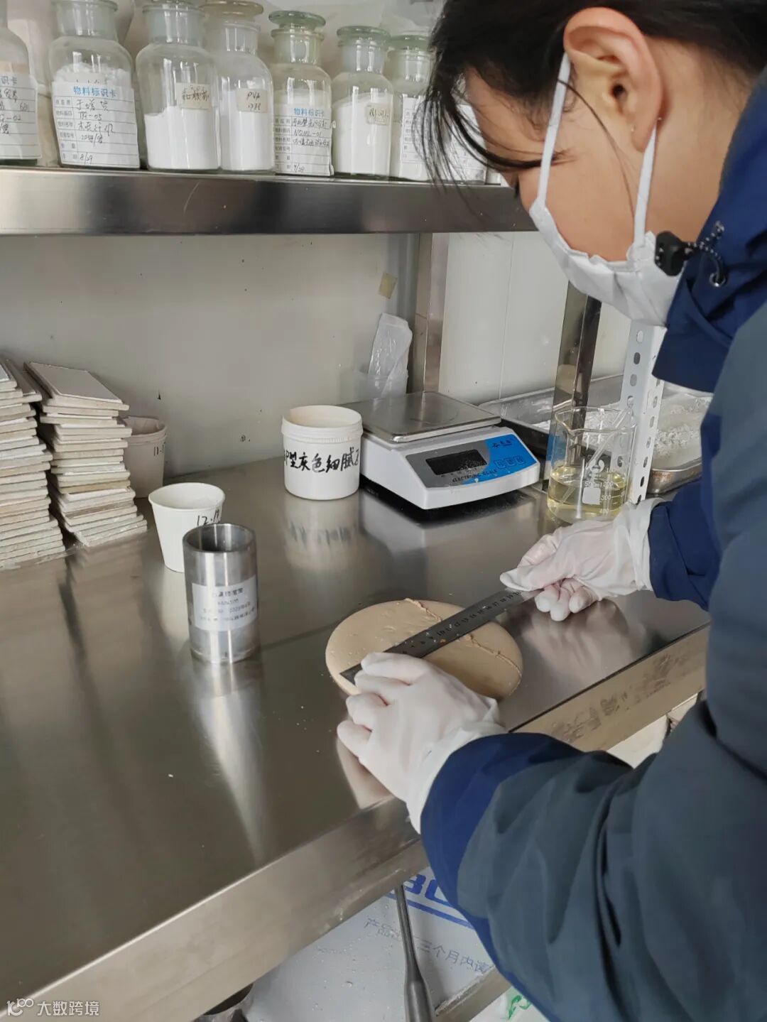 3.质检室人员对原材料进行各项检测。