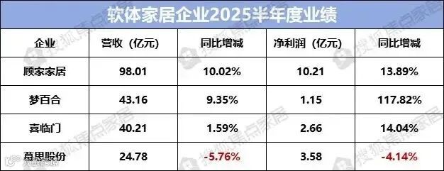 全球贸易摩擦与国内市场需求放缓的双重考验下,智能化和全球化正成为破局关键。截至2025年8月28日,四家软体家居龙头企业——顾家家居、喜临门、梦百合、慕思股份相继披露半年度业绩报告。财报数据显示,行业正经历显著分化,企业战略选择与执行能力直接体现在业绩表现上。