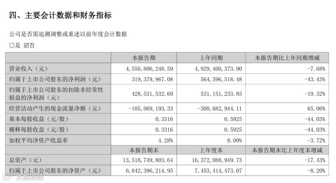 索菲亚上半年公司实现营业收入45.51亿元,同比下降7.68%;归属于上市公司股东的净利润3.19亿元,同比下降43.43%。