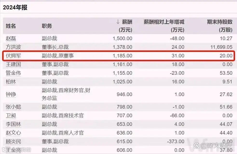 伏拥军是美的集团的核心管理人员之一,也是“美的集团全球合伙人”持股计划的持有人之一。去年,他从美的集团领取的税前薪酬达1185万。