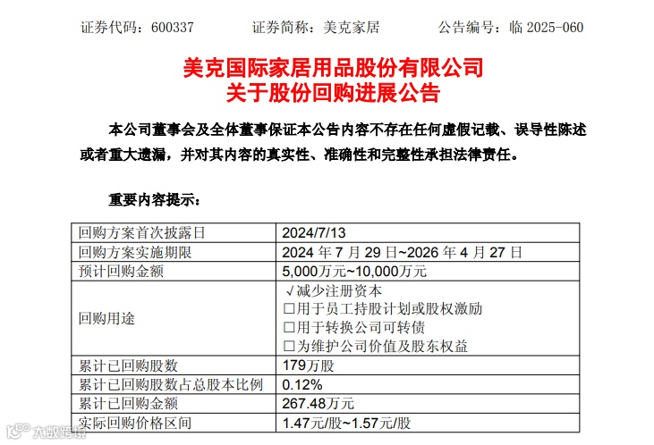 进入 11 月,美克家居、箭牌家居、海鸥住工、东鹏控股、火星人5家家居上市企业陆续披露股份回购进展公告。这些公告并非标志着新一波回购潮的开启,而是前期既定回购方案的有序落地,既展现了企业对自身发展前景的信心,也为资本市场注入了稳定预期。
