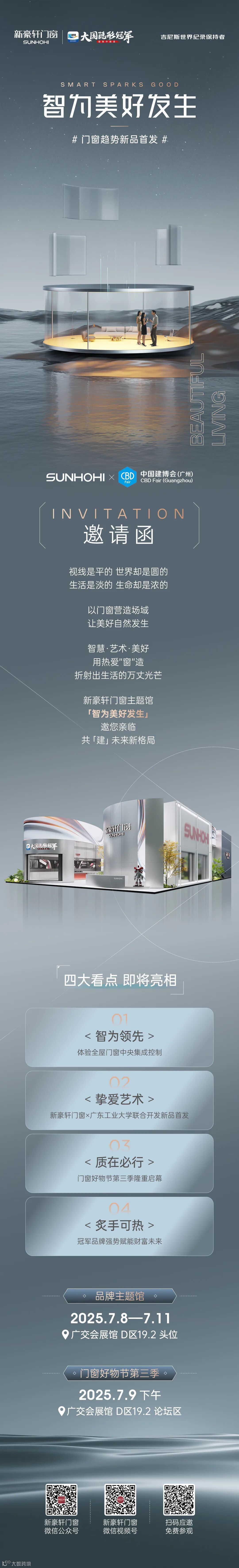 新豪轩门窗好物节第三季暨新品发布会,不仅是一场新品与技术的盛宴,更是一次对“好窗如何成就好房、赋能好生活”的系统性解答。新豪轩门窗以全球匠心汇聚,锚定品质坐标。7月9日14:00,让我们相约广交会展馆D区19.2论坛区,以窗为媒,共筑“好窗好房质生活”的璀璨新章!