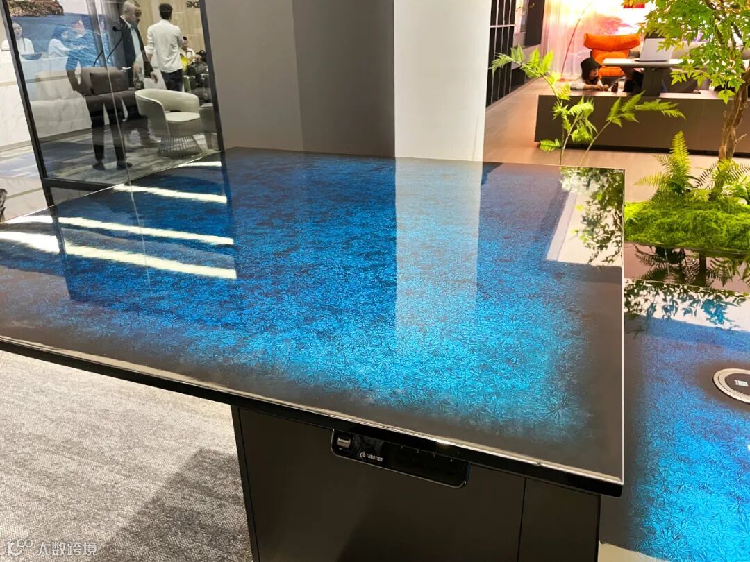 中泰此次展馆空间的设计独具匠心,灵感源自浩瀚海洋,借自然的无限性解构传统办公,巧妙地将展馆幻化成一片挣脱物理桎梏的智慧蓝海。