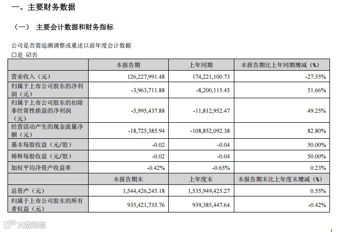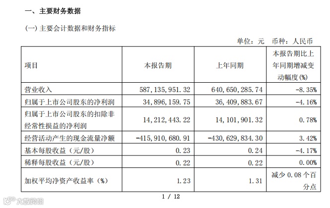 皮阿诺一季度营收1.26亿元(-27.55%),净利润-396.37万元(+51.66%)。毛利率环比下降 6.97 个百分点,复苏之路漫长。