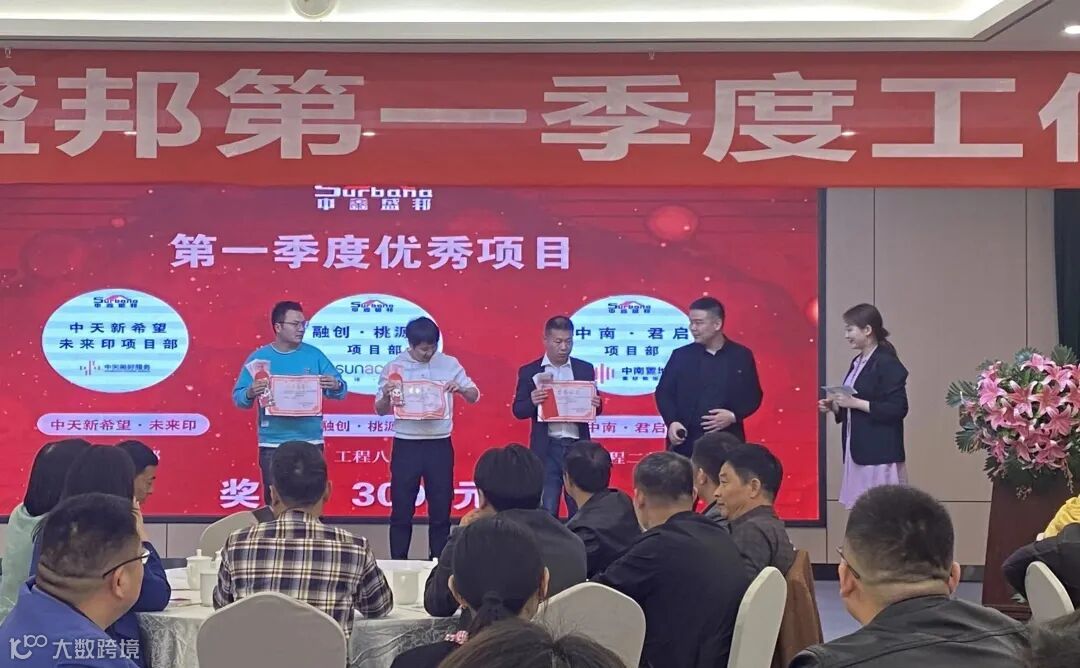 颁奖完毕,2023第一季度中鑫盛邦工作会议继续,中鑫盛邦工程二部曾利军曾总、中鑫盛邦领导郭西盈郭总、工程六部蒋文君文总、工程一部徐静徐总均上台针对一季度工作及二季度工作计划做出了详细、严谨的报告。