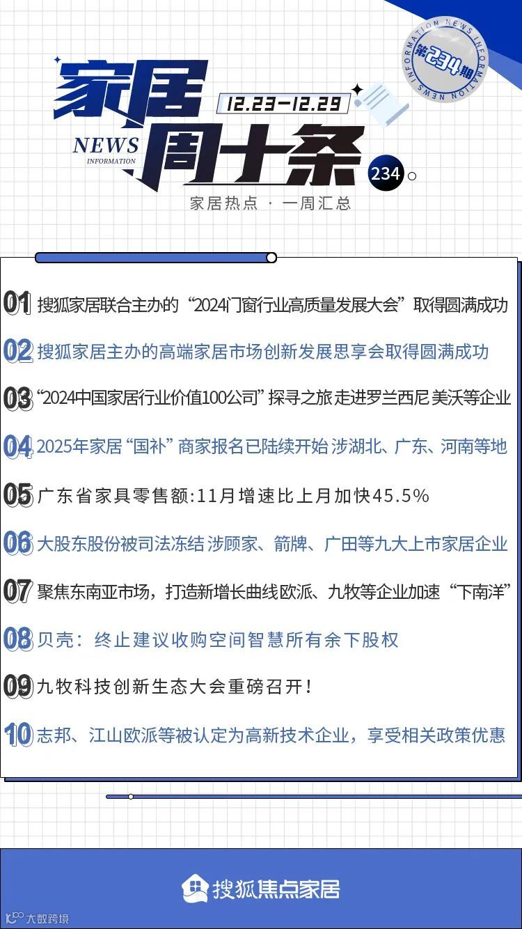 12月24日,由搜狐焦点家居主办的“引领品质革新,破浪前行——迎接2025高端家居增长蓝海”创新发展思享会在广州圆满落幕。此次活动汇聚了威法高端定制、法迪奥、CASA BRAVA意美家、诺贝尼、瓦瑟门窗、尚驰家居集团等家居行业翘楚。与会嘉宾就当前高端家居市场的形势、挑战与机遇,以及未来的发展趋势展开了深入的思想碰撞与交流,共同探讨如何在变革的浪潮中把握2025年增长的蓝海机遇。