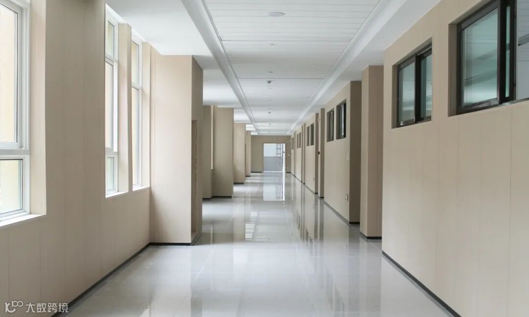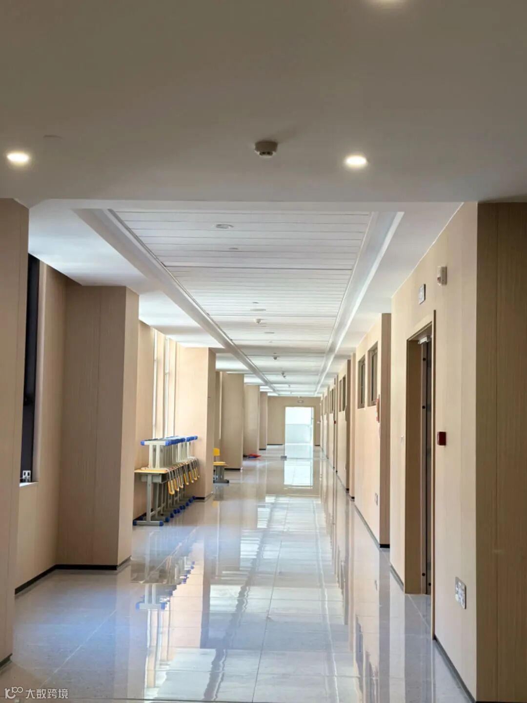 走廊的设计内敛大气,创造出一个宽敞、明亮、舒适的学习环境。