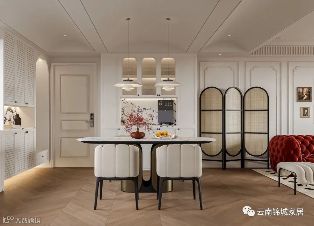 法式轻奢定制采用简洁的线条和精美的装饰、混合图案和纹理等,以独特和优雅的方式融合古典与现代风格。