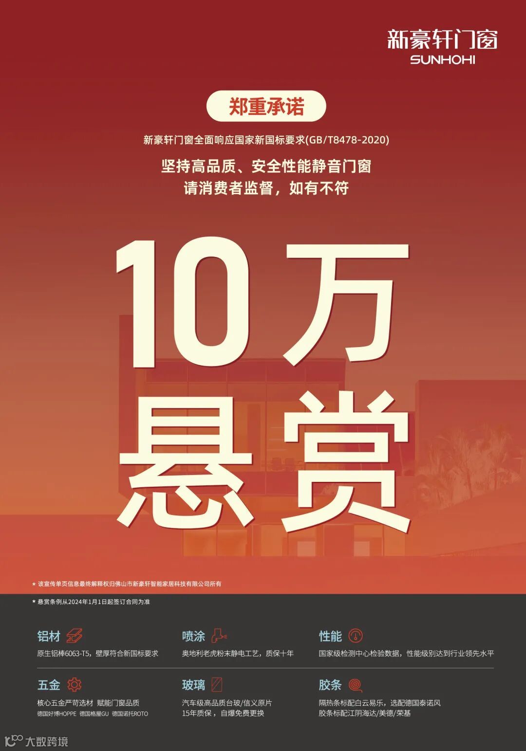 秉持对品质的严格要求,新豪轩门窗直击消费者核心痛点,还于3月率先行业发布《质量承诺书》及“10万悬赏”,引领行业卷品质而非卷价格。晁总指出,“10万悬赏”的推出,不仅是对消费者权益的保护,更是对整个行业的一次推动。他说道:“我们希望通过这一举措,引导行业回归到以品质为核心、以消费者体验为重的竞争轨道上,推动行业从价格战向价值竞争转型升级。”新豪轩的这一创新举措,得到了市场的广泛认可,也引起了众多同行的效仿,促使行业整体向着更加规范化、高质量的方向发展。