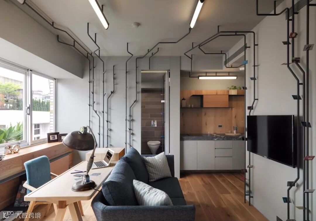 用砖墙取代单调的粉刷墙面,或者是原始的水泥墙面,还喜欢裸露管线,感觉酷酷的工业风更适合年轻人和喜欢潮流前卫的人。