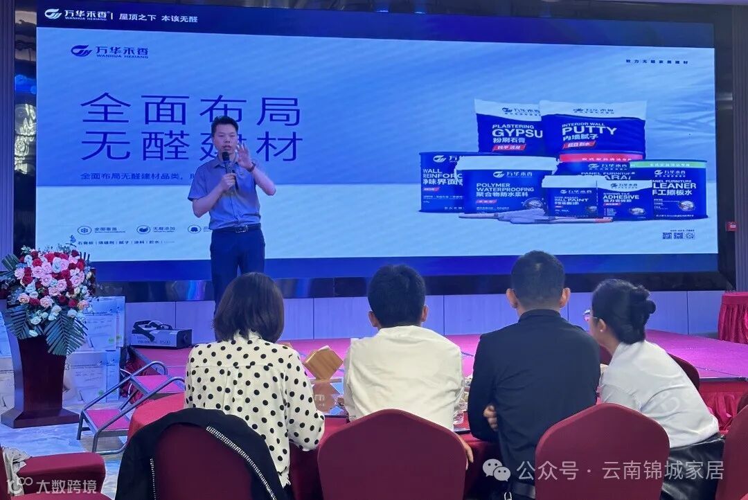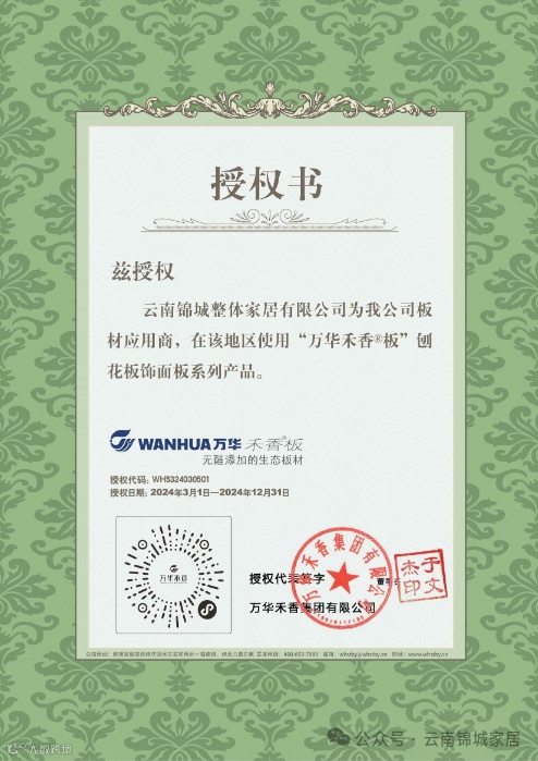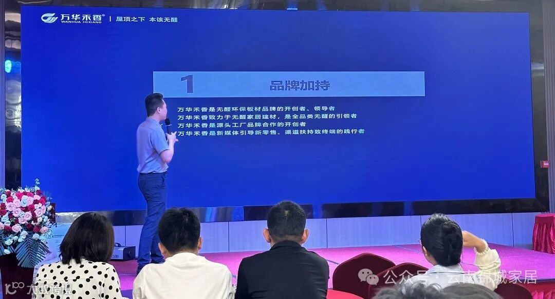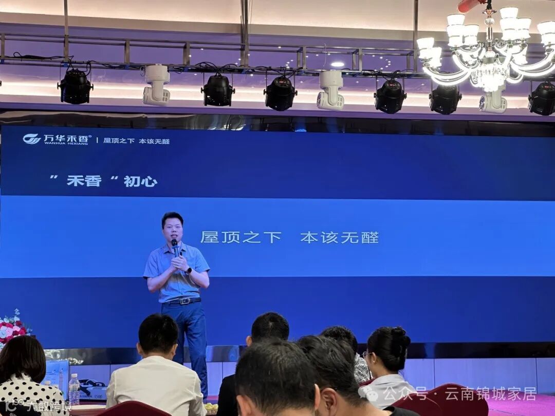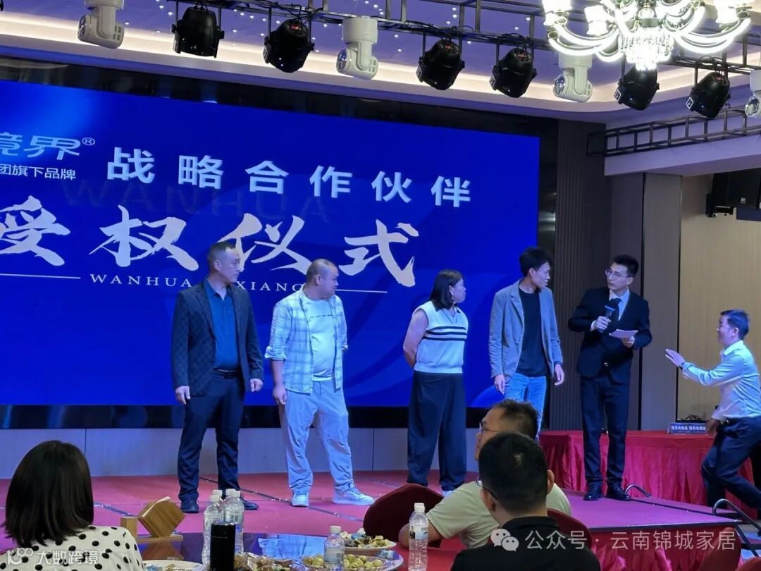 在活动的荣誉颁发环节,远盛福临公司的领导为万华禾香零境界板的授权客户逐一颁发了荣誉牌匾,并与他们合影留念。云南锦城格林公司,作为战略合作伙伴,其代表在台上接受了远盛福临公司领导颁发的授权证书,这一荣耀时刻凸显了其在合作中的重要角色。