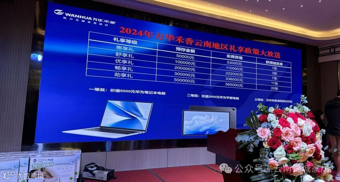 在本次活动中,云南远盛福临新型材料有限公司的营销总监魏家鑫先生向来宾们深入阐述了礼享活动的详细规则和优惠政策。他的演讲一结束,便激发了众多合作商的积极参与,他们纷纷迅速登记加入。特别值得一提的是,云南锦城格林公司作为万华禾香的重要合作伙伴,率先预存了30万元,这不仅展现了其对活动的支持和信任,也为他们的客户赢得了极具吸引力的优惠。