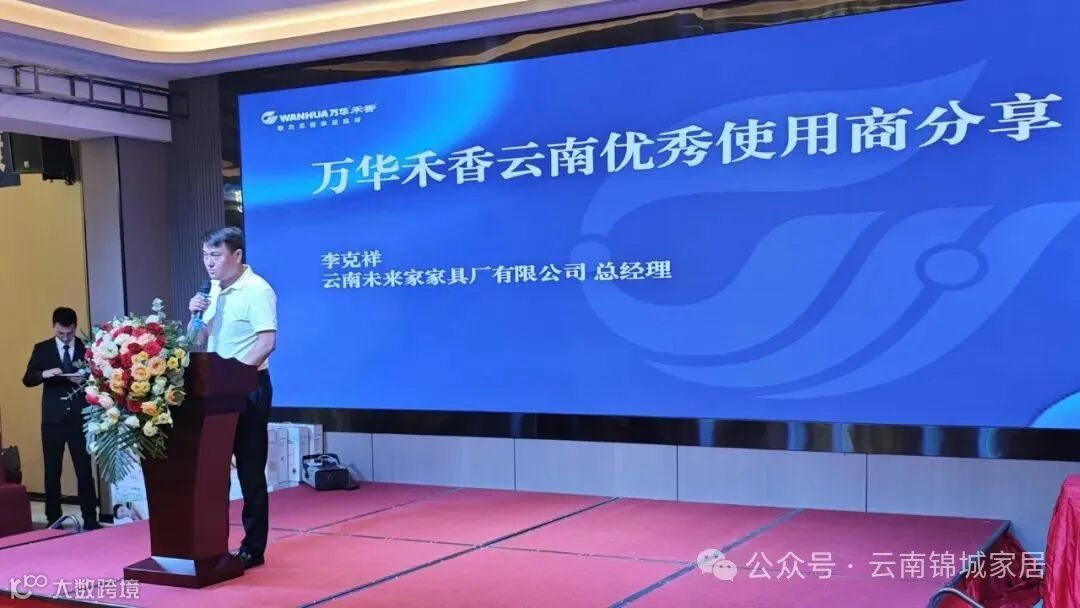 万华禾香产品优秀使用商代表、远盛木业优秀使用商代表云南亚沙家具有限公司总经理张广勇、云南未来家家具厂有限公司总经理李克祥分别进行了发言,他们都对万华禾香的品牌信誉与品质表达了深深地信任和赞扬,并且传达了后续合作的意愿。