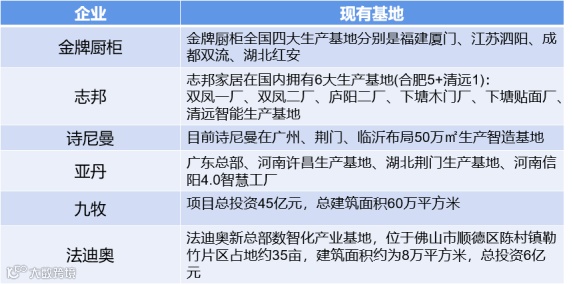 投资6.1亿元建设生产基地,就是为了扩大在华南市场的覆盖和占有率。金牌厨柜进军湖北,诗尼曼布局广东、湖北、山东也是同理。