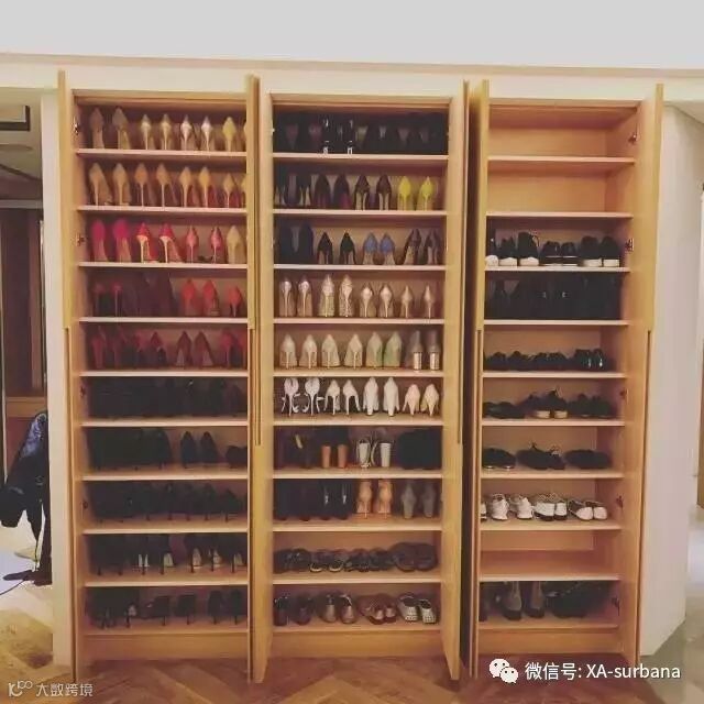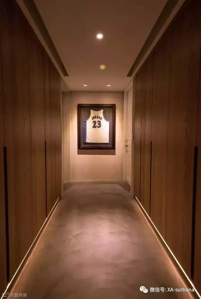 最平淡的走道区域也是一大亮点,推开柜门,整齐有序的鞋子一字排开,鞋柜下面还附有灯带设计哦,也是really贴心!