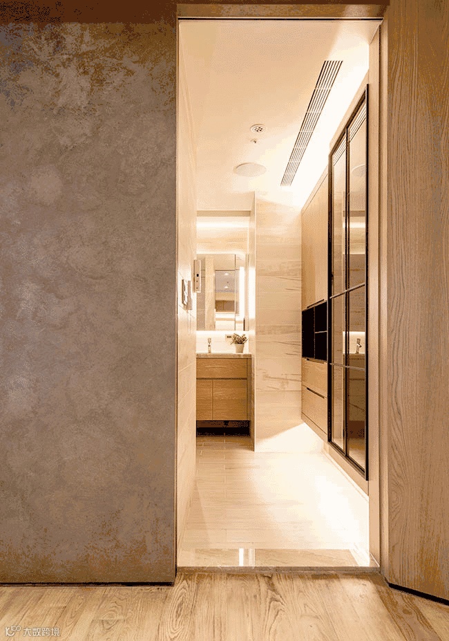 主要将空间分为三部份,并以灰色搭配木头色调呈现,分别是独立更衣室、睡眠区与浴室。