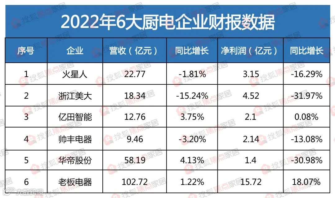 2022年,厨电行业上市企业的营收情况参差不齐。其中,亿田智能、华帝股份和老板电器实现了营收增长,特别是老板电器再次突破百亿元大关,行业的发展潜力还远未被开发。
