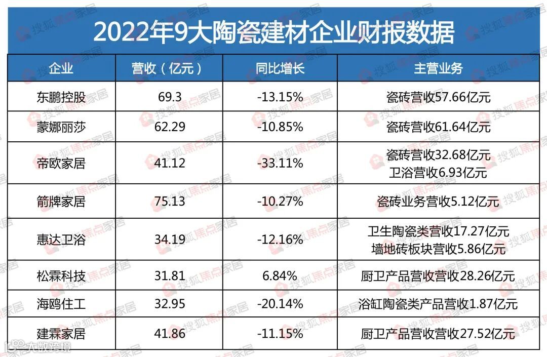 为深入了解家居行业不同企业的具体表现,本文选择定制家居、陶瓷建材和厨电行业三大板块,搜狐焦点家居通过观察不同家居企业在2022年的业绩表现,分析家居行业的发展趋势,希望可以为行业的未来发展策略提供一些借鉴。