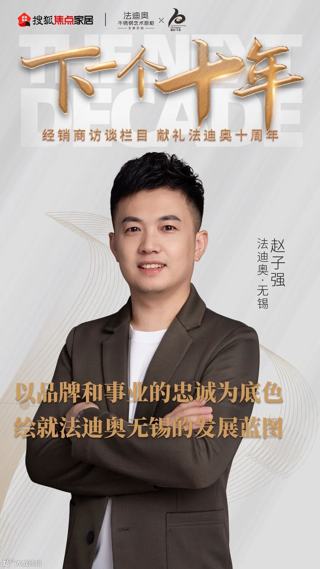 《下一个十年》法迪奥大商访谈第5期,对话法迪奥无锡经销商赵子强,看曾经的外企精英辞职回家创业,如何从小变大,由弱变强,在不锈钢定制行业中劈波斩浪,赢得市场认可的?又是如何十年如初,始终追随法迪奥发展的脚步,成为优秀的大商代表?