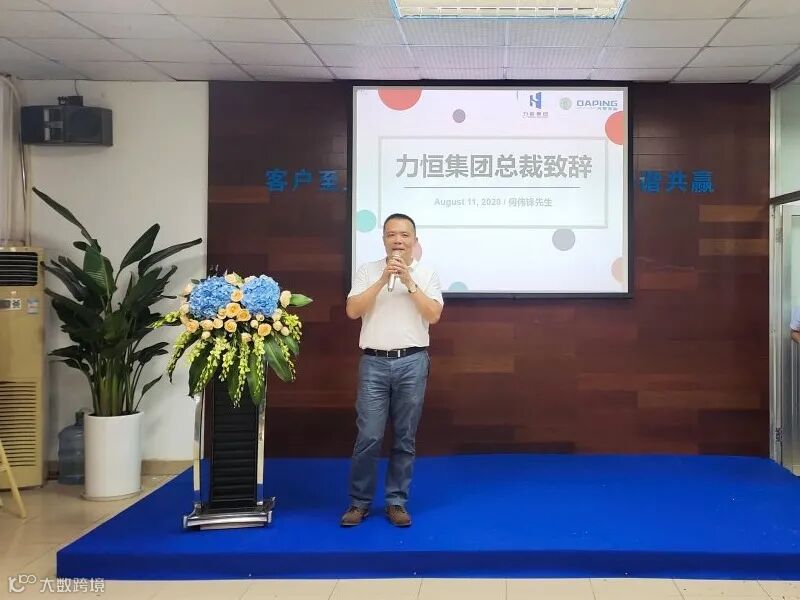 厚邦木业总经理祝鹏深先生代表厚邦公司,对力恒学院&大平培训中心的成立表示祝贺,寄望在力恒学院的带领下,大平公司人杰、业勤、绩优,同时鼓励在座的伙伴们能不断提升自我。