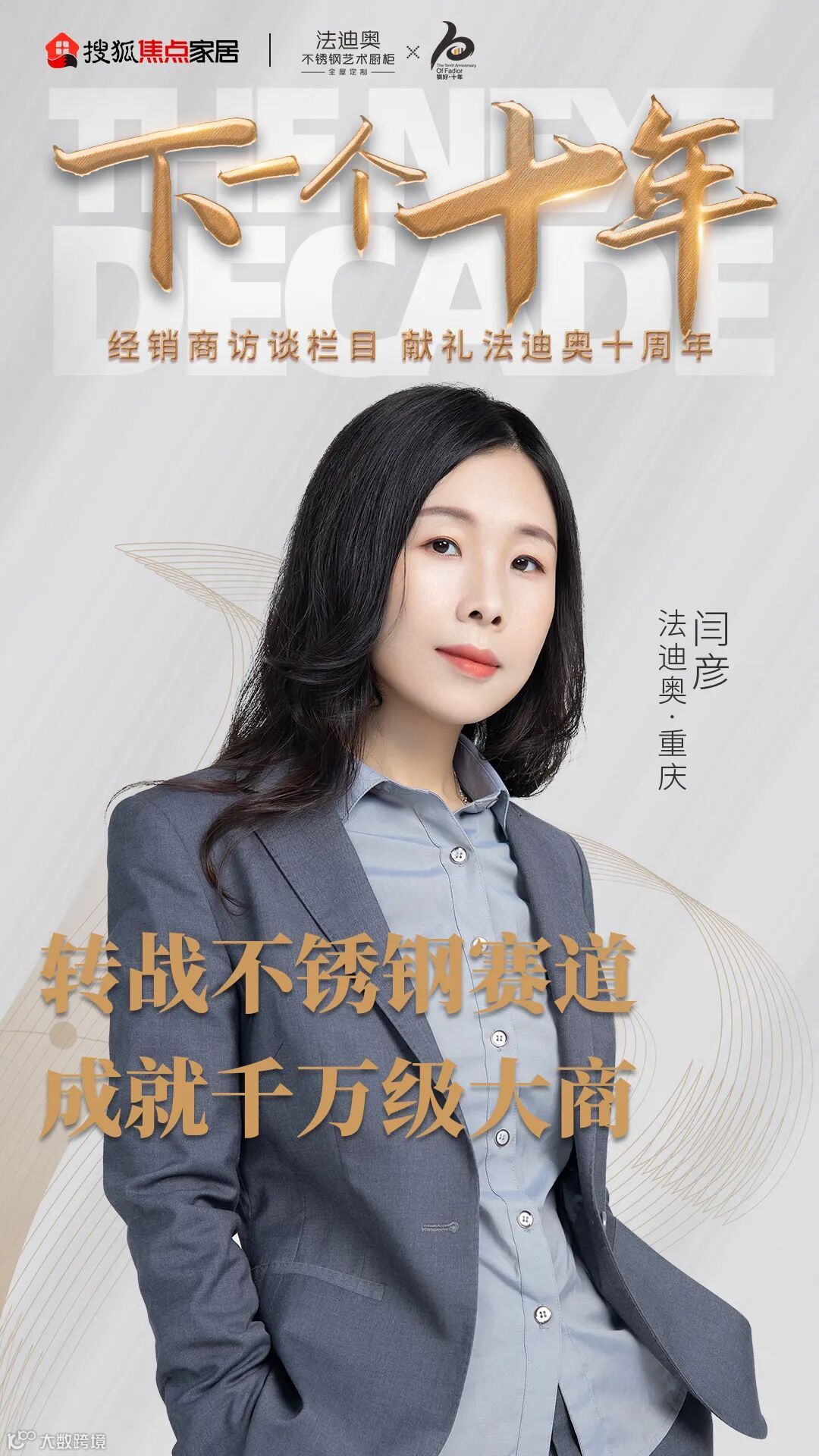 《下一个十年》法迪奥大商访谈第1期,对话法迪奥重庆经销商闫彦,听她如何从零开始,一路“闯关晋级”,成为重庆高端不锈钢定制江湖中的“传奇”。