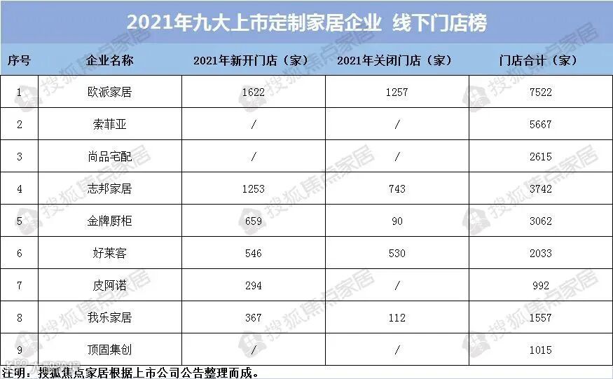 对于偏重制造和零售属性的定制家居企业,如要抢占更大市场份额并实现长期稳步发展,加快线下开店速度、增加门店数量,同步提升运营效率,并进行多元化渠道布局,寻找新的增长引擎,这是企业当前发展的重中之重。据搜狐焦点家居统计,9大定制家居上市公司共有门店(包含直营)20683家。其中新增超4741家(因索菲亚、尚品宅配、顶固未披露未计算在内)。