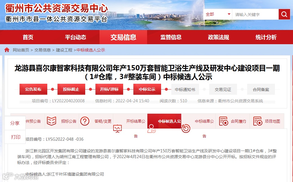 近日,浙江新北园区开发集团有限公司建设的衢州龙游县喜尔康智家科技有限公司年产150万套智能卫浴生产线及研发中心建设项目一期,于2022年4月24日在衢州市公共资源交易中心龙游县分中心公开开标。资料显示,该项目计划总投资75055万元,其中环保投资800万元,总用地面积120143.8平方米(约180亩),新建厂房、仓库、办公楼、研发中心及其他附属用房,建成后形成年产150万套智能卫浴产品的生产能力。