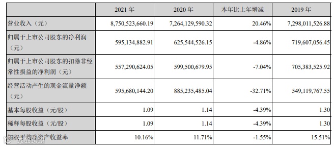 3月28日,大亚圣象(000910.SZ)发布2021年年度报告。公司2021年度实现营业收入875,052.37万元,同比增加20.46%;实现净利润61,623.90万元,同比减少2.90%;归属于母公司所有者的净利润59,513.49万元,同比减少4.86%。