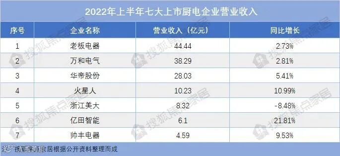 七大上市厨电企业2022上半年: