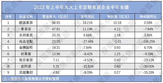 九大上市定制家居企业上半年: