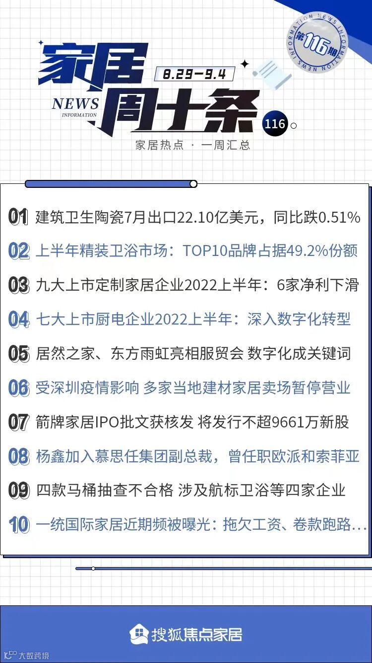 截至2022年8月31日,九大上市定制家居企业的2022半年度业绩报告已经全部披露,除欧派家居、志邦家居和金牌厨柜外,其他企业的净利润均不同程度的下滑。