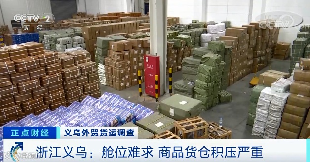 在浙江义乌一个出口商品的仓库,6千多平米的库房里面几乎存满货物,但与之形成鲜明对比的是来这里运输的集装箱卡车却是寥寥无几。据了解,这段时间几乎每天都是这样,所以很多货物都不得不积压在库房里面。