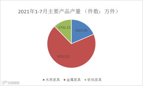 据浙江省经信厅和省统计局统计,搜狐焦点家居获悉,2021年1-7月,全省规模以上家具企业完成累计产量1.68亿件,累计增长28.2%。其中,木质家具2622.05万件,累计增长29.1%;金属家具9757.12万件,累计增长28.8%;软体家具1732.13万件,累计增长14.5%。