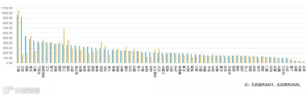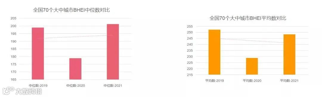 2020、2021年全国70个大中城市BHEI数据对比分析