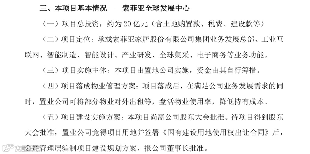 公告显示,索菲亚全球发展中心被定位为“承载索菲亚集团业务发展总部、工业互联网、智能制造、智能设计、产业研发、全球集采、电子商务等业务功能”。