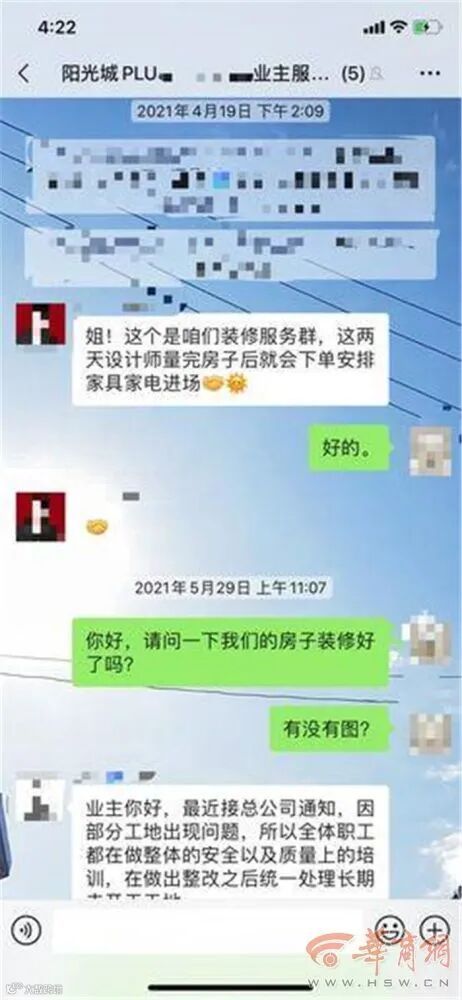 华商报记者看到,5月29日陈女士通过微信询问公司人员装修进展,对方回复称,最近接到总公司通知,因部分工地出现问题,所以全体职工都在做整体的安全以及质量培训,在做出整改后再统一处理装修进展。